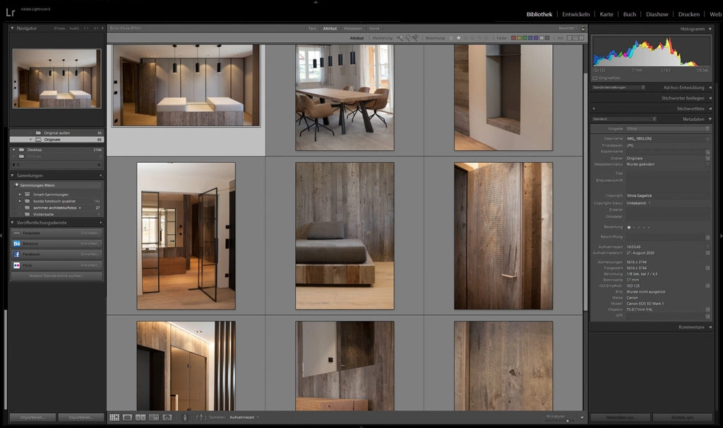 Das Fotografieren habe ich im Architekturstudium für mich entdeckt. Als wichtiges Werkzeug begleitet die Kamera meine langjährige Tätigkeit als Architektin. Ich entwerfe, plane und realisiere Neu- und Umbauten, von Innenräumen bis hin zu Außenanlagen. Mein Beruf prägt meinen Blick für Räume, Details und Atmosphären von Gebäuden. Die Arbeit von Handwerkern, Kollegen und meine eigene, halte ich auf Fotos für Webseiten, Ausdrucke und Fotobücher zur Präsentation fest.